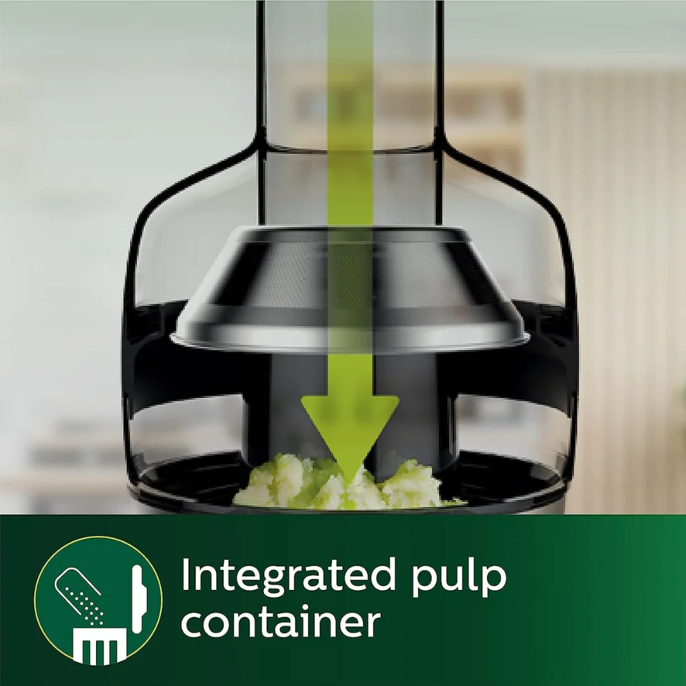 El Extractor de Philips no solo se destaca por su funcionalidad, sino también por ofrecer una experiencia interactiva al exprimir. La transparencia de la tapa y el contenedor de pulpa permite a los usuarios observar el proceso de extracción de jugo de frutas y verduras. Además, la visibilidad directa del nivel de llenado del contenedor facilita saber cuándo es el momento de vaciarlo.