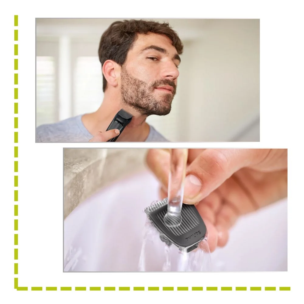 Prueba un nuevo aspecto, cualquier día de la semana, con este recortador todo en uno duradero. Los 6 accesorios de calidad te permiten crear fácilmente el estilo facial exacto que deseas.