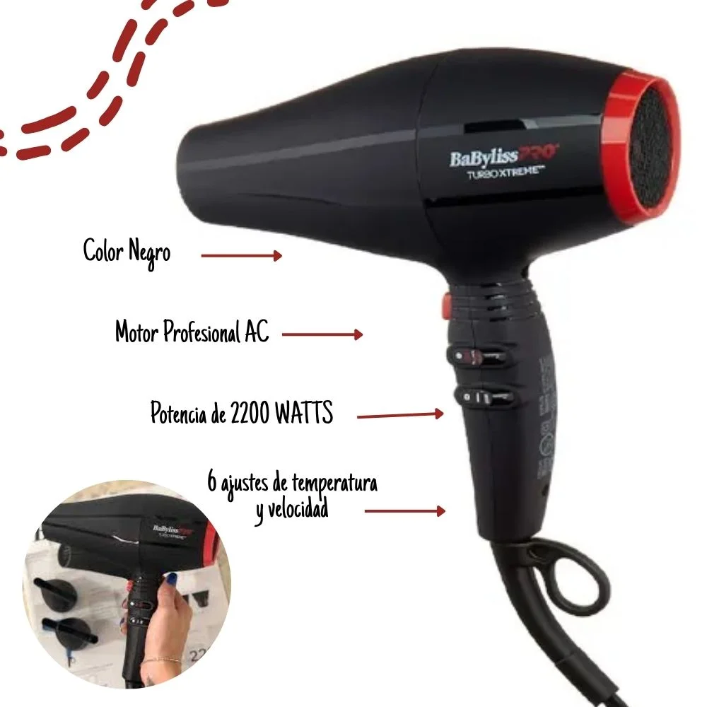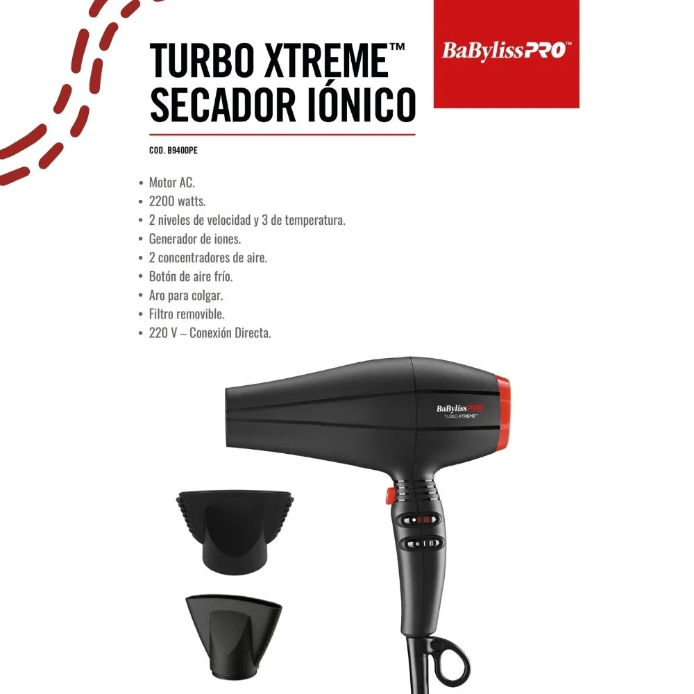 Secadora De Cabello Babyliss Pro Iónico Profesional Turbo Xtreme B9400PE