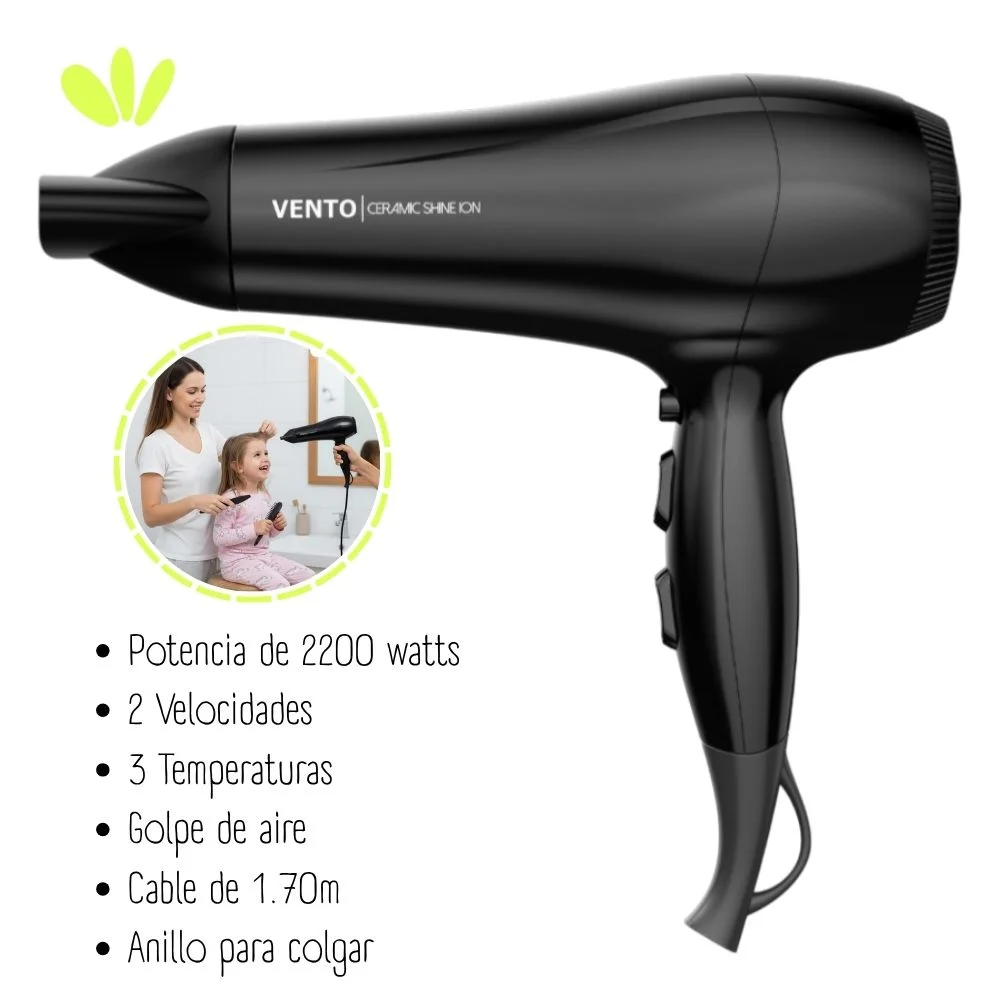 Secadora de cabello Gama Vento cuenta con tecnologia Nano Silver Antibacterial que recubren el secador para proteger el cabello de agentes perjudiciales para su salud y brillo natural. Su actividad es continua y duradera.
