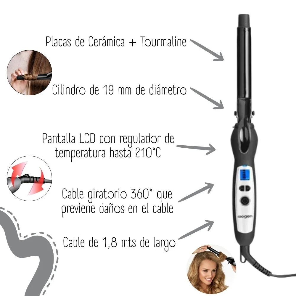 - Tecnología de Barril de Alto Rendimiento: Crea rizos definidos, uniformes y duraderos.