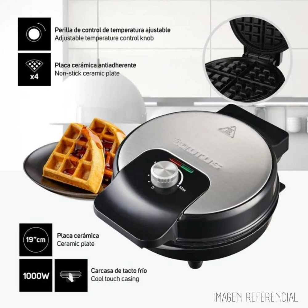 La waflera Taurus modelo Sweet Cooking es una excelente opción para preparar deliciosos waffles de manera rápida y sencilla. Con una placa de 19 cm de diámetro y una potencia de 1000 watts, esta waflera asegura un calentamiento uniforme y eficiente, permitiendo obtener waffles perfectamente cocidos en poco tiempo.